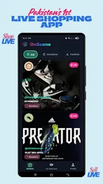 OnScene เป็นแอปช็อปปิ้งสดที่เปลี่ยนแปลงเกมซึ่งออกแบบมาสำหรับตลาดปากีสถาน ช่วยให้ผู้ใช้สามารถช็อปปิ้งแบบเรียลไทม์ในขณะที่มีปฏิสัมพันธ์โดยตรงกับผู้ขายและผู้สร้าง แพลตฟอร์มที่เป็นนวัตกรรมนี้ช่วยให้ผู้ใช้สามารถรับชมการถ่ายทอดสดที่นำเสนอผลิตภัณฑ์ต่างๆ ตั้งแต่รองเท้าผ้าใบที่ทันสมัยไปจนถึงสิ่งจำเป็นในชีวิตประจำวัน เพิ่มประสบการณ์การช็อปปิ้งด้วยบรรยากาศของชุมชนที่มีชีวิตชีวา ผู้ใช้สามารถตั้งคำถามและรับคำตอบทันที ทำให้กระบวนการซื้อที่น่าสนใจและมีข้อมูลมากขึ้น